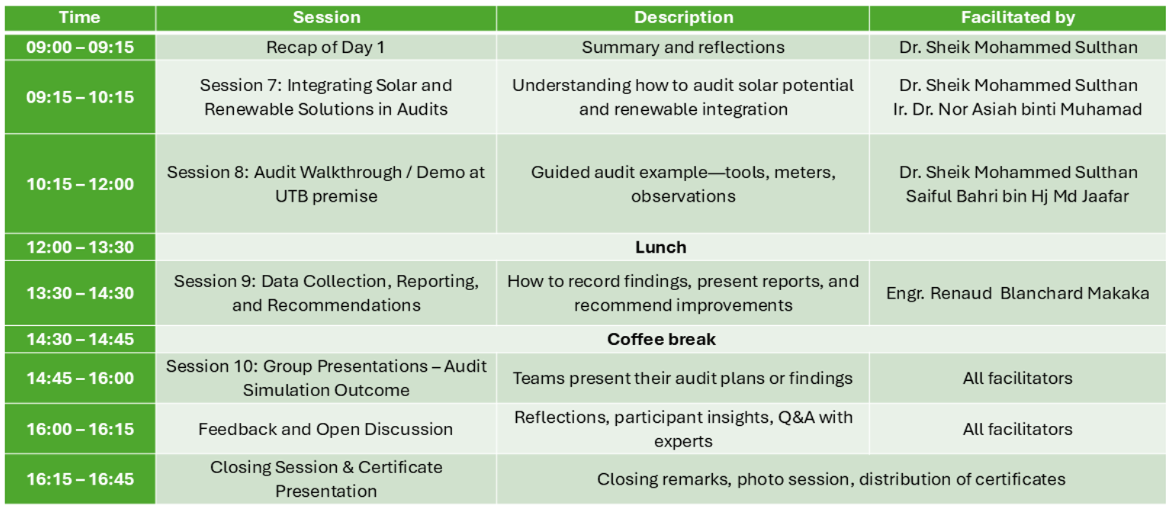 - Develop participants’ foundational skills in conducting green and carbon audits.